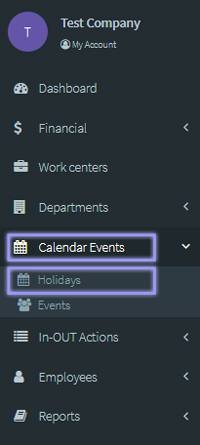 At the "Holidays" section at "Calendar Events" you can configure the paid holiday days that your employees are entitled to within the current year.