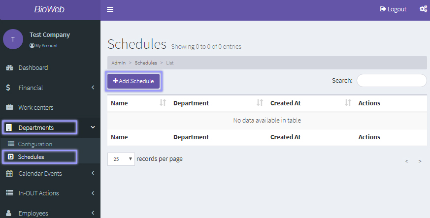 At the left menu, click on "Departments" and then on "Schedules".
