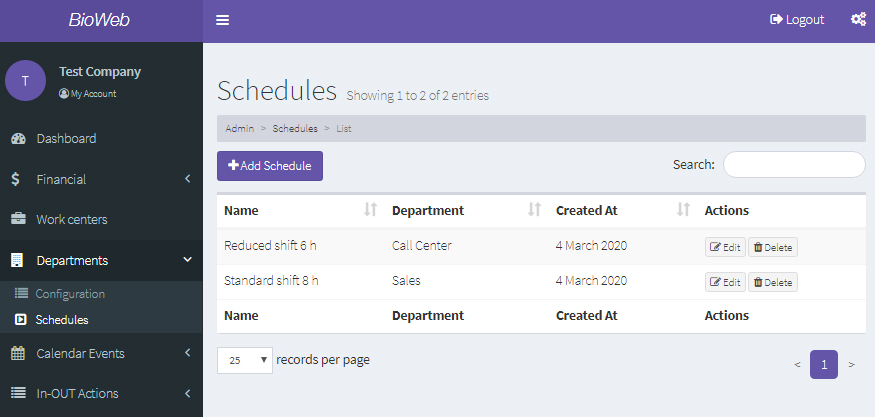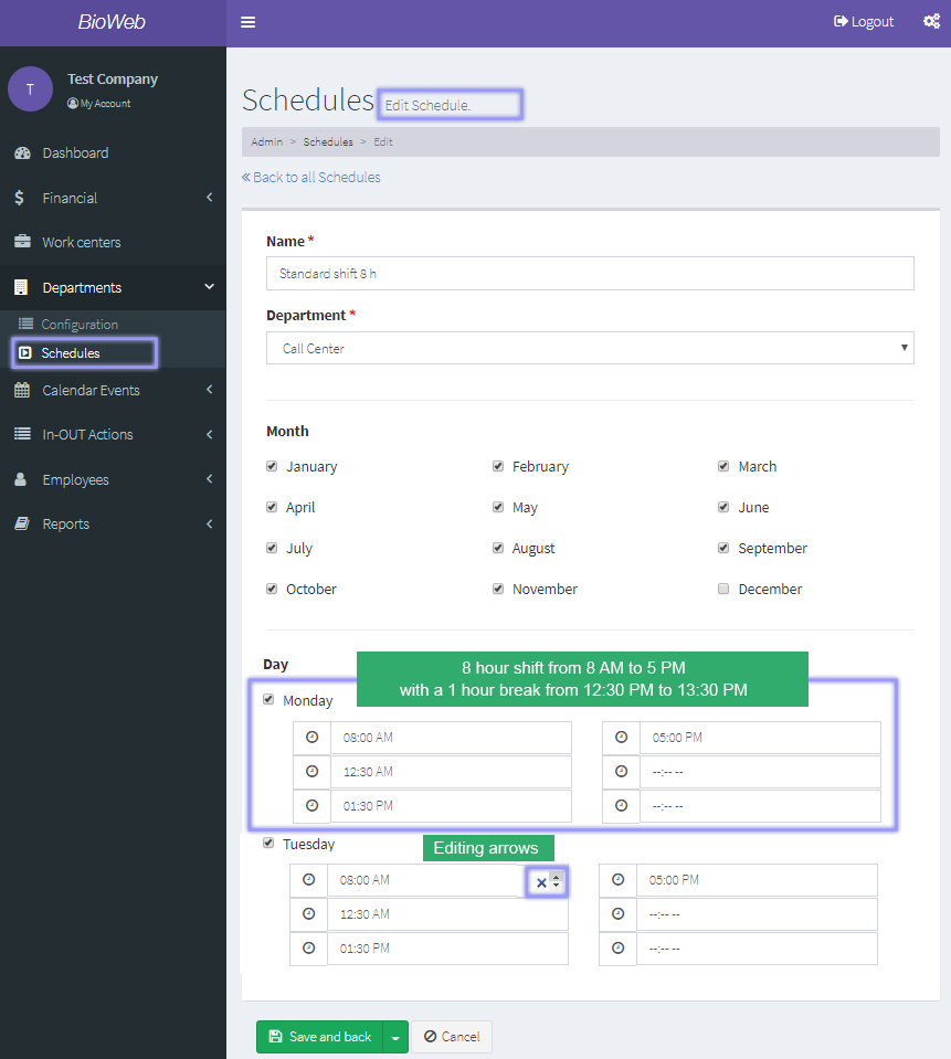 Upon filling in the office's information, click on the "Save and back" button. Your schedules will appear at the work center list for you to edit or delete.