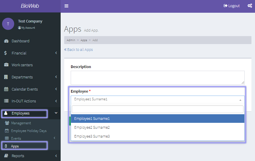 At the "Add app" form, select the employee you wish to give access to from the drop list.